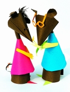 教学难点:在制作中发现纸卷造型的新方法,设计出一个有趣的纸卷造型。