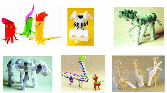 1. 利用各种纸制作成自己喜爱的物体,以卷为主,可以穿插其他方法,使制作的物体能站立起来;