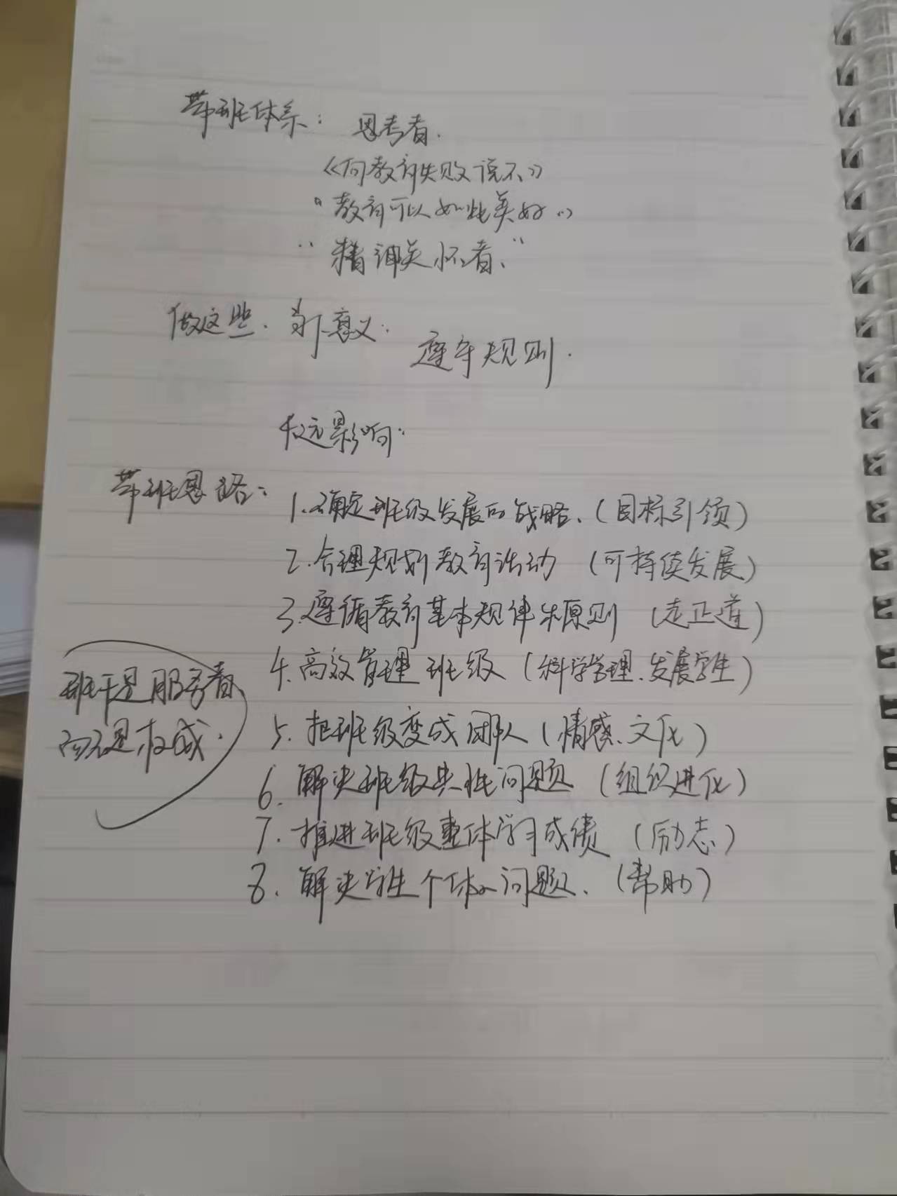 当我们在带班前,首先要确定班级发展的战略,合理规划教育活动,这些方式都必须遵循教育基本规律和原则;其次把班级变成团队,解决班级共性问题,从而推进班级整体学习成绩,对学生个体的问题,为他们提供帮助。