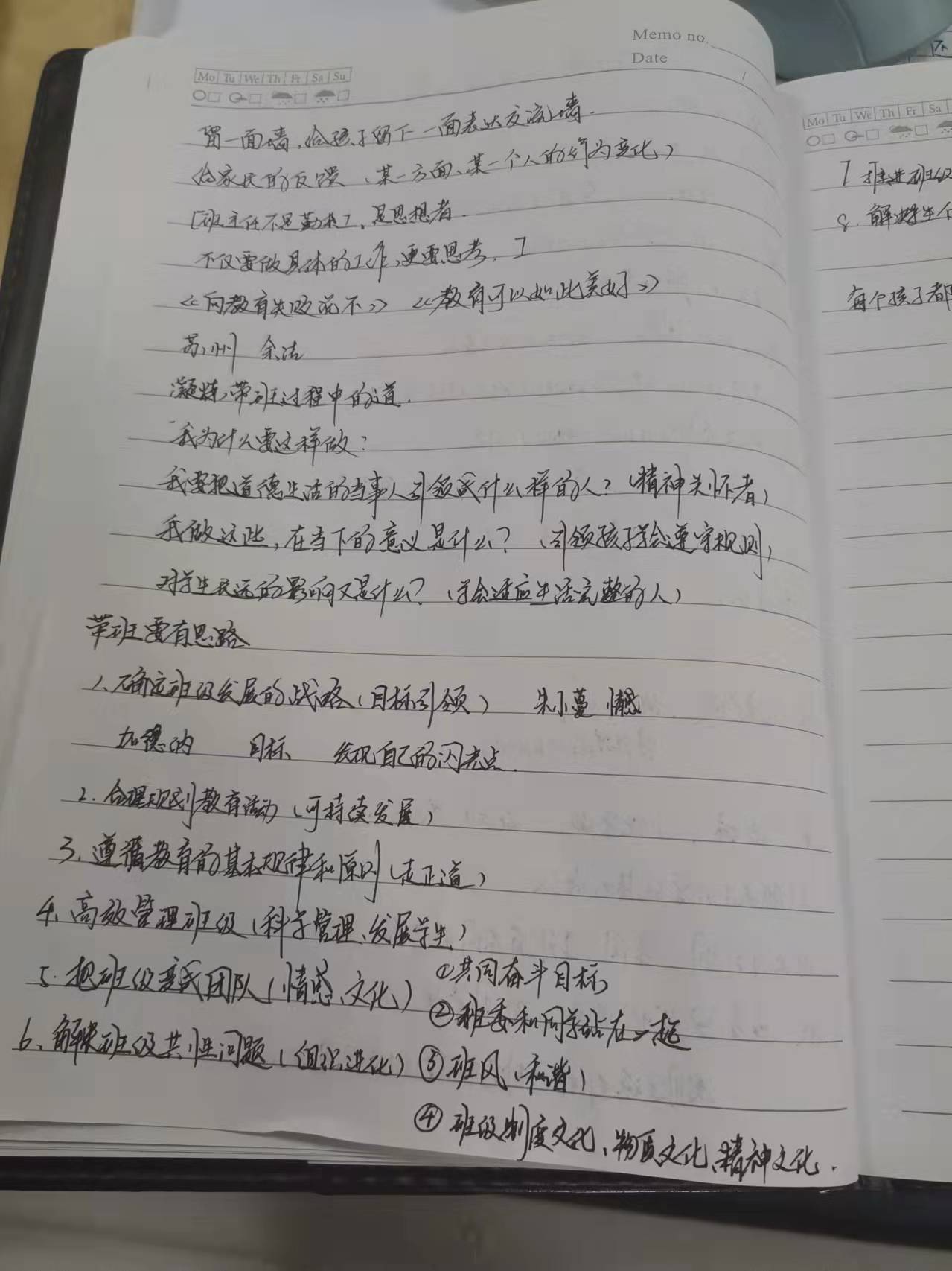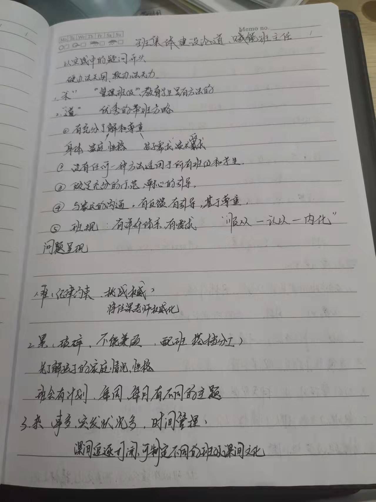 张老师还将班主任在班级管理中遇到的问题一一呈现,诸如难、累、杂、散,并一一给了破解之法,给老师们提供了班级管理的新思路、新方法。班主任不是勤杂工,是思想者,不仅要做具体的工作,还要学会思考。
