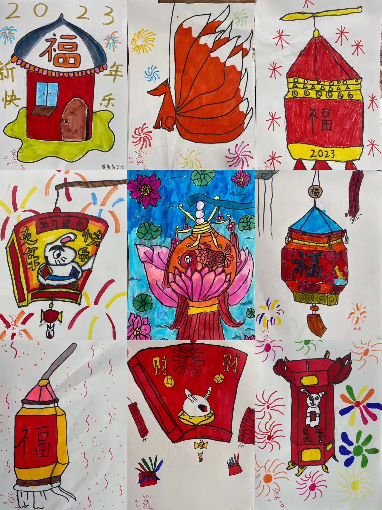 本次“花灯璀璨迎新春”活动,既给紫东娃们提供了更多的创作空间,释放了紫东娃们创作的小宇宙,也展示了我校美术学科特色作业成果。