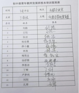 3月14日下午,初中部在五楼会议室召开青年教师专业发展班专题培训会,教务处孙主任主持会议。丁仁有副校长作了主题为《抓实教学常规提升教学质量》的讲座。丁校长指出我校青年教师较多,特别是刚刚参加工作的新教师占比较大,大家从一开始就要抓实教学常规,认真做好教学五认真。要认真研读课标和教材,在了解学情的基础上认真备课,要及时向老教师请教。上课前要提前到教室做好上课的准备,也要提醒学生做好课前准备。课堂中要关注学生的听课表现,注意教学设计活动的有效性,充分调动学生学习的积极性,鼓励学生参与小组合作学习,对学生的课堂表现要及时予以鼓励,不轻易批评学生。课后要及时反思总结本节课的亮点和不足,写好教学反思。课后作业要精心设计,宁缺勿滥,及时批改,尽可能做好个别辅导和当面批改。年轻教师要积极听课,主动向老教师请教,也要跨学科听课,取长补短。